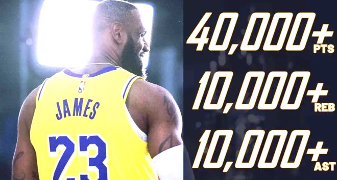 第一个根本破不了的纪录,是詹姆斯的“411工程”——生涯累计40000分+10000篮板+10000助攻。这个纪录的难度,从来不是单一数据的突破,而是“得分、篮板、助攻”三大维度的全能巅峰,三者缺一不可。先看得分门槛:NBA历史上能突破30000分的球员仅有8人,而40000分至今只有詹姆斯一人达成,现役最接近的凯文・杜兰特30571分,且他已35岁,若想冲击40000分,需保持场均25分再打6个赛季,还得全程规避大伤,这种“耐操度”本身就是顶级稀缺品。更关键的是篮板与助攻的“双重枷锁”:能拿到40000分的球员,大多是专注进攻的“得分机器”,比如张伯伦、科比,他们几乎不可能兼顾10000+篮板与助攻;而能做到“篮板+助攻双万”的球员,如贾巴尔,得分又远不及40000分。詹姆斯的特殊性在于,他从20岁进入联盟就保持“攻防传”全维度输出,巅峰期长达20年,既没因专注得分放弃篮板与串联,也没因年龄增长丢失效率,这种“全能+耐操+长巅峰”的组合,NBA历史独一份。未来即便有人能侥幸突破40000分,也大概率是“单一得分手”,想兼顾双万篮板与助攻,难度堪比“同一赛季包揽得分王、篮板王、助攻王”,根本不可能实现。